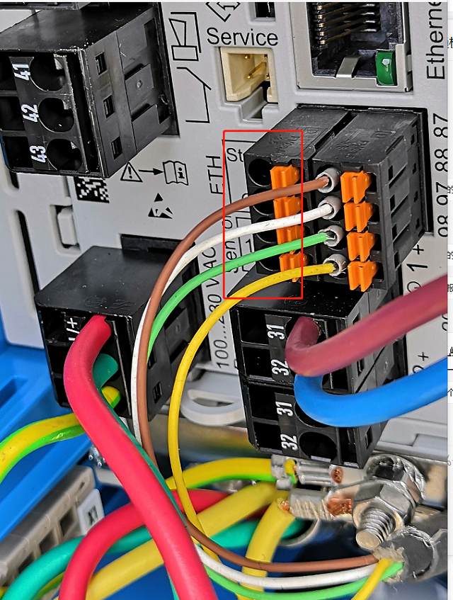 正确的接线应该把下图的右排的线接到画红线的一排去。