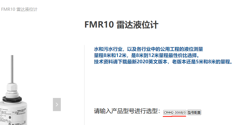 例如这个FMR10的产品页面,输入CM442-20W8/0, 然后点击型号配置,