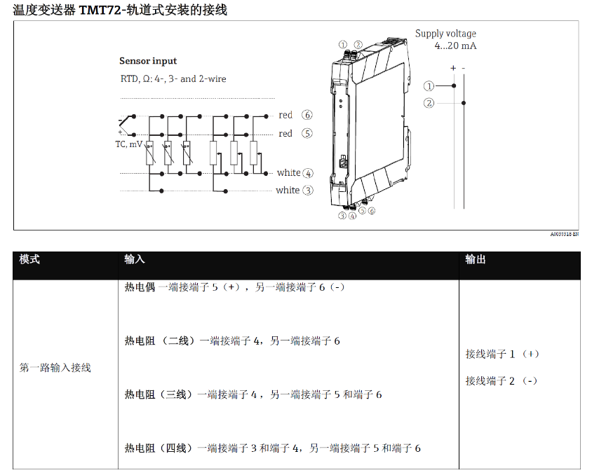 热电偶 一端接端子 5(+),另一端接端子 6(-)