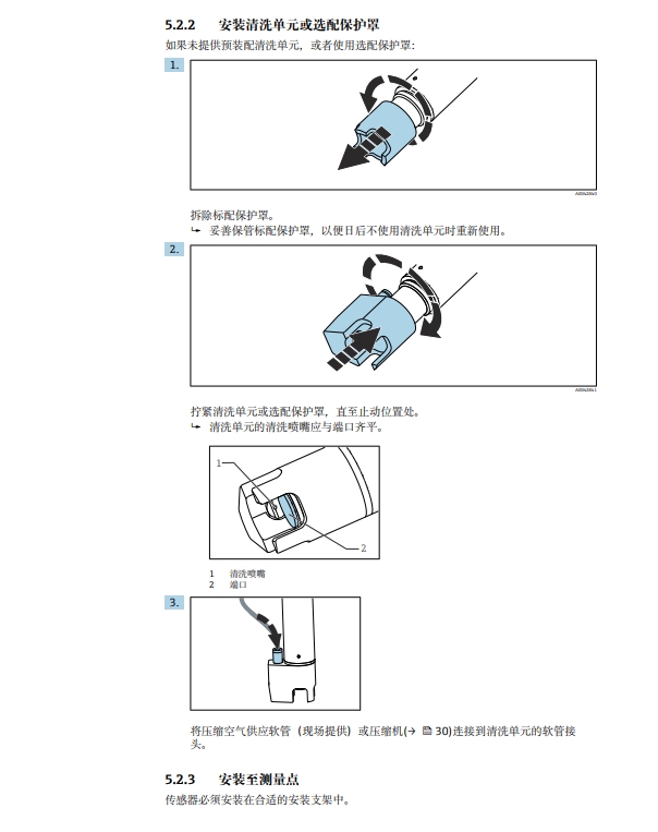 4.污水处理中使用的安装支架CYA611,箭头指向为介质流向。安装角度为45°(推荐安装角或90°如需了解更多关于COS61D的安装方法,建议查阅传感器使用说明书或咨询专业技术人员。
