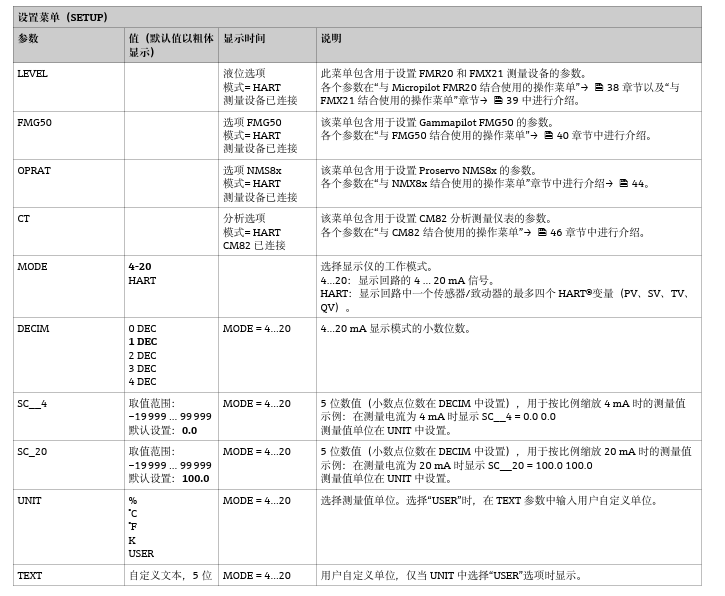 1.测量原理:RIA15 回路显示仪安装在4 - 20 mA或HART®信号回路中,数字式传输测量信号或HART®过程变 量。回路显示仪无需外接电源,直接由回路供电。设备符合HART®通信协议要求,可以HART®5.0及其以上版本的设备配套使用。 液晶显示屏能够显示5位数字可扩展测量值,即使在强光照条件下用户也能轻松进行读数。除了 显示测量值,还可通过三个按键轻松实现单位和棒图显示。可以按需选择带背光显示功能的设备。但是,电压降将增大。RIA15 可以与指定型号的 E+H传感器或变送器配套使用,不仅可以显示测量值,还可以执行传感器设置。但是,此时必须在订购选项中选择选项“Level”或“Analysis”。