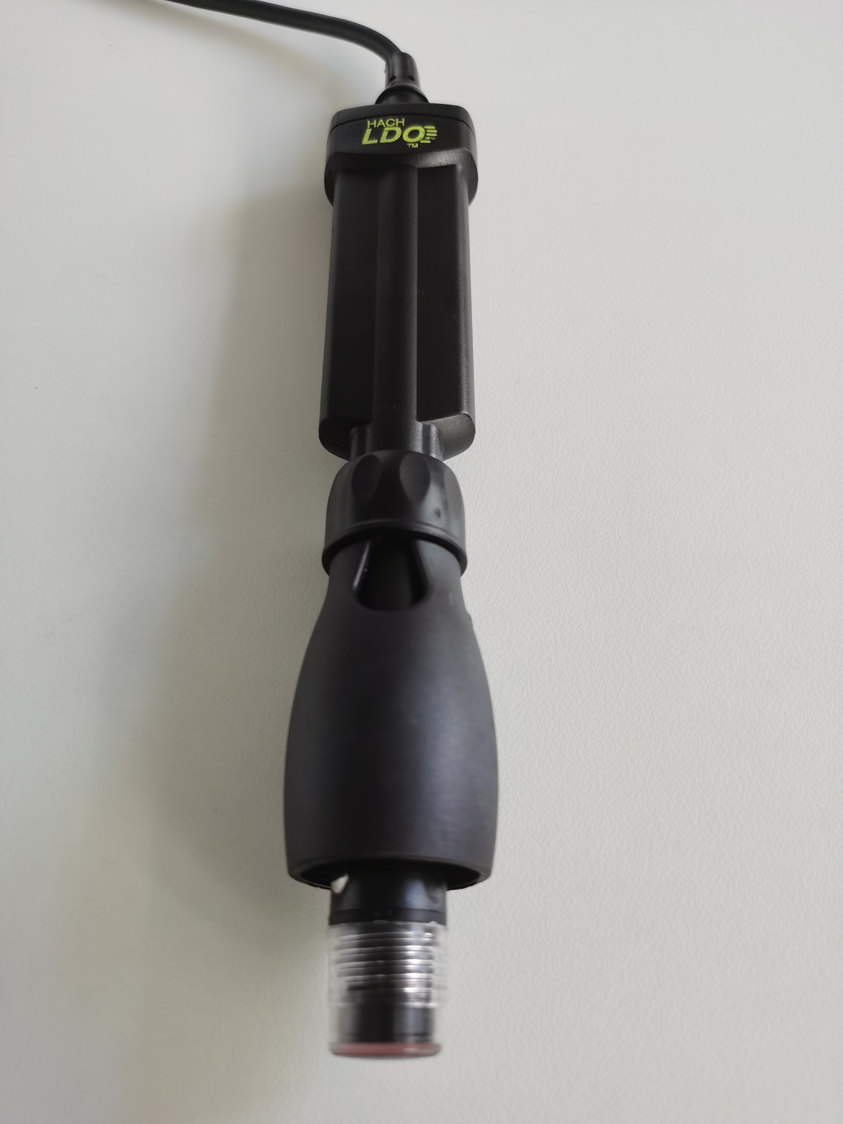 HACH公司的 LDO 溶解氧传感器被一层荧光物质所覆盖,当LED 光源发出的蓝光照射到传感器表面的荧光物质时,荧光物质受到激发释放出红光,从发出蓝光到释放出红光的这段时间被记录下来,水中的氧气浓度越高,释放红光的时间就越短。在红光释放时间与溶解氧浓度之间建立相关性,仪器通过测定红光的释放时间计算出溶解氧浓度,进而在屏幕中直接显示出溶解氧浓度,