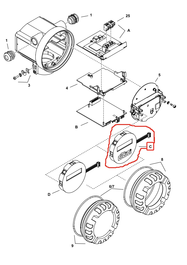 50103472 显示模块(HART) 涡街流量计显示器 在位置C