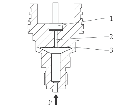 下面是该款压力变送器的测量原理示意图,如图。带隔膜密封的相较于不带的多了一个金属膜片。其原理为压力导致传感器金属隔膜发生形变。填充液将压力传递给电阻桥所在的测量部件一侧。测量与压力相关的桥路输出电压变化,并进行后续计算处理。