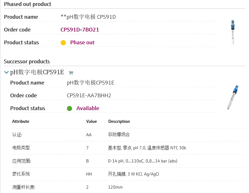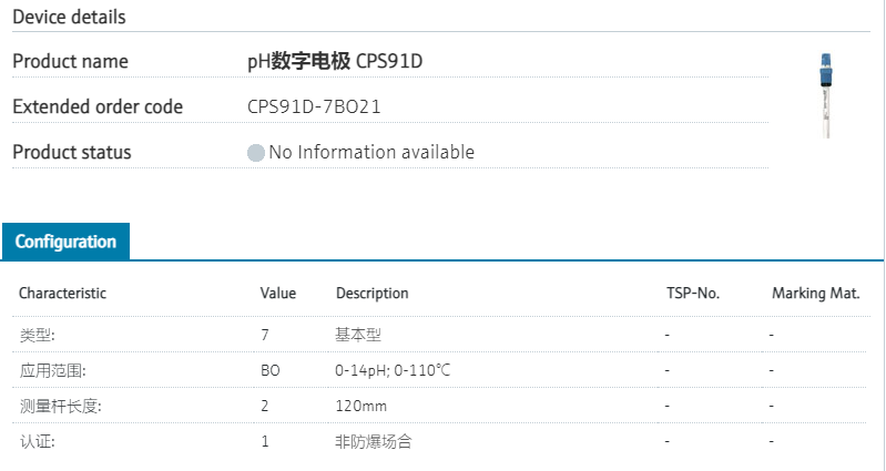 CPS91D-7BO21 订货号 CPS91D-7BO21 扩展订货号 (CPS91D-7BO21) 名称 **pH数字电极 CPS91D 基本描述 pH-comb. electrode