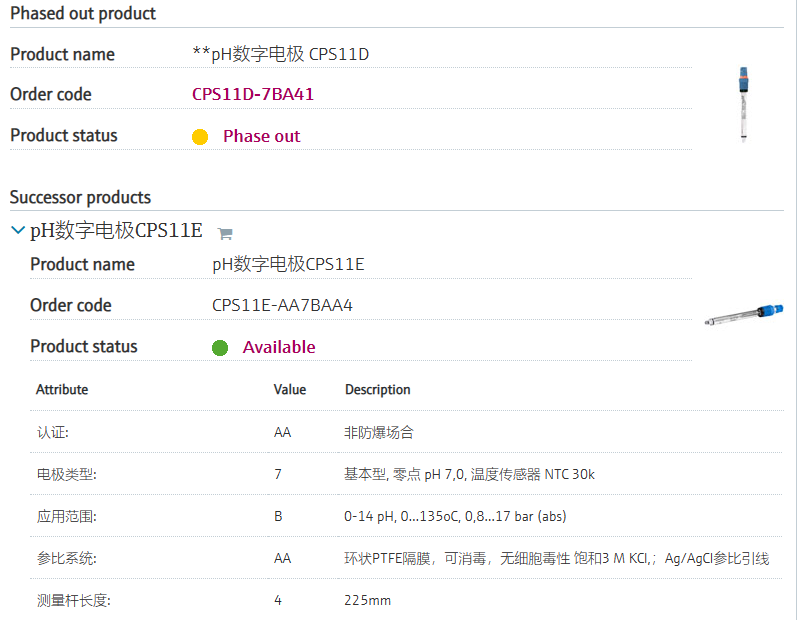 CPS11D-7BA41 订货号 CPS11D-7BA41 名称 pH数字电极 CPS11D 基本描述 pH comb. electrode