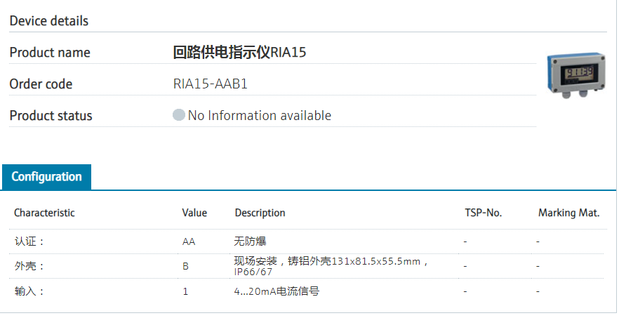 回路供电的4…20mA 过程指示仪,不带现场外壳