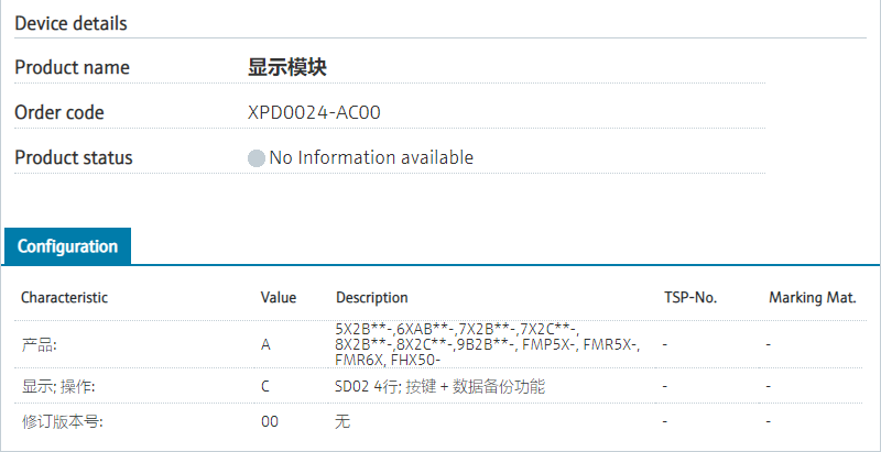 XPD0024-AC00 订货号 XPD0024-1009/0 扩展订货号 (XPD0024-AC00) 名称 显示模块 基本描述 For housing: GT18, GT19, GT20.