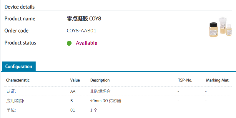 COY8-AAB01 订货号 COY8-1040/0 扩展订货号 (COY8-AAB01) 名称 零点凝胶 COY8 基本描述 Zero point: