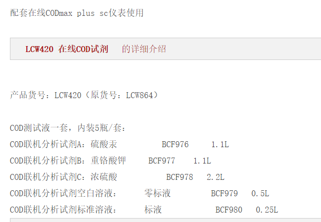 产品货号:LCW420 哈希在线COD试剂 原货号LCW864