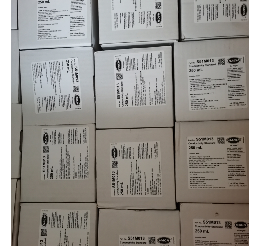 每个标准都有自己的合格证书和可追溯性,可从Hach网站下载。使用经认可的实验室制造的标准可以让您对可追溯链和计算的不确定性充满信心。货号 适用仪器型号 说明 参数 分析方法 包装 量程 S51M013 NACL,25.0μS/cm,AT 25C 电导率 电导率标准-无参数 250mL Concentration 25.0 µS/cm ±5.0 % at 25°C Description Conductivity calibration solution Formula NaCl Method Name Standard solution verified by Reference Materials Laboratory NIST Traceable Yes Package Type Bottle Parameter Conductivity Platform Solution Quantity 250 mL Storage Conditions 10 - 25 °C (protect from light)