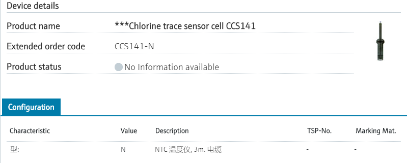 余氯电极 CCS142D-AAS80(停产了,请用CCS51D-AA11BF)
