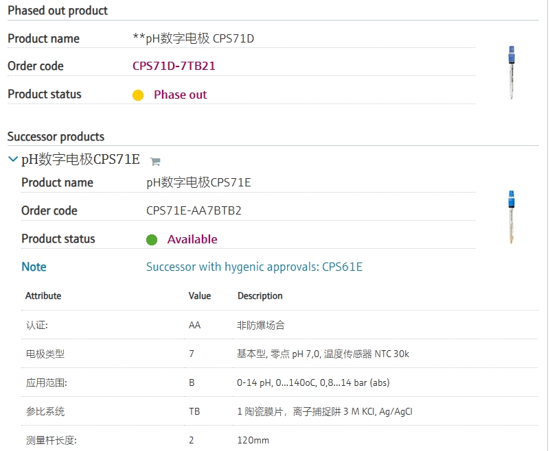 CPS71D-7TB21 扩展订货号 CPS71D-7TB21 名称 ***pH数字电极 CPS71D 基本描述 pH comb. electrode,