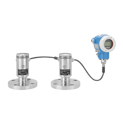 电子差压变送器Deltabar FMD71是差压系统,由两个传感器和一台变送器组成,用于带压罐或蒸馏塔/蒸发器中液体的液位、体积或质量测量。一个传感器用于静压测量(高压),另一个传感器用于顶部压力测量(低压)。基于上述两个数字量压力值,变送器计算得出液位值(电子差压)。电子差压测量系统消除了传统差压测量中出现的问题。