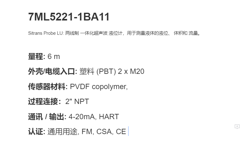 西门子一体式超声波液位计,6米量程