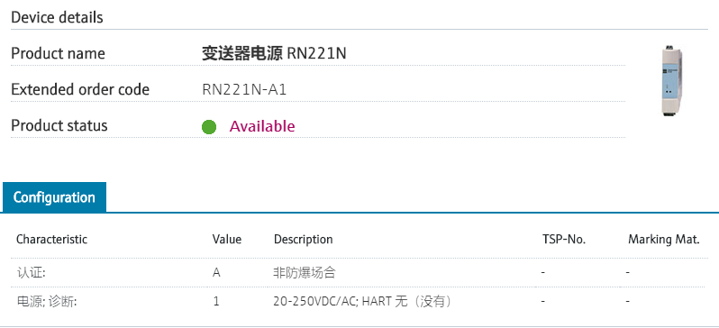 有源隔离栅,用于安全隔离4...20 mA电流信号 RN221N已经停产,新款为RN42-AA1AU